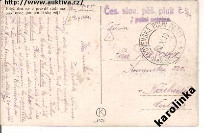 Popis předmět : POHLEDNICE BLAHOPŘEJNÁ= MALÝ FORMÁT , ZACHOVALÁ,PROŠLÁ POLNÍ POŠTOU= OBDOBÍ OBSAZOVÁNÍ SLOVENSKA V roce 1919-1920