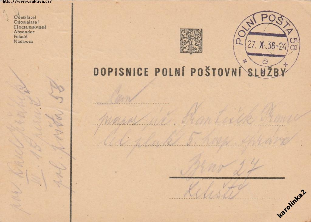 ČS.POLNÍ POŠTA 58-a /rok1938*c5312