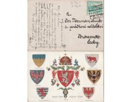 ČSR 1920 pohlednice barevná Znaky zemí koruny České, prošlá