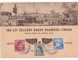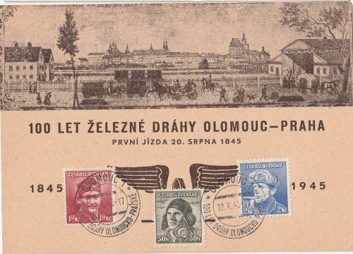 ČSR 1945 100 let železné dráhy Olomouc Praha pohlednice se z