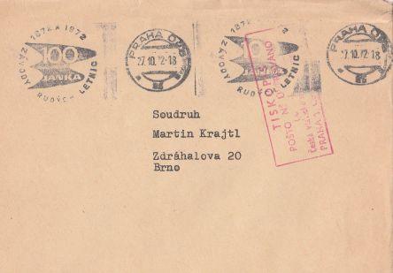 ČSR 1972 Strojové příležitostné razítko Praha 025 100 Janka - Závody Rudých letnic 1872 - 1972, Poštovné úvěrováno
