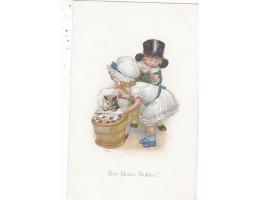 DĚTI+KOČKA =LITOGRAFIE=rok1925*S1458