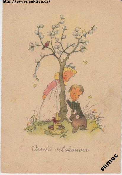 děvče - chlapec - králík - velikonoce