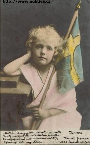 Děvče s praporem dl.adr.r.1902 prošlá poštou O80