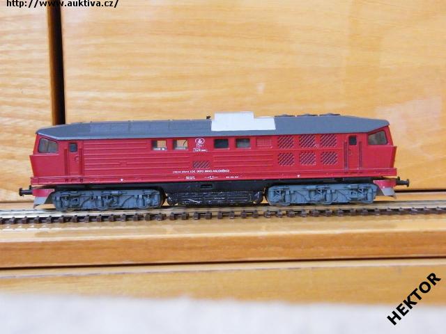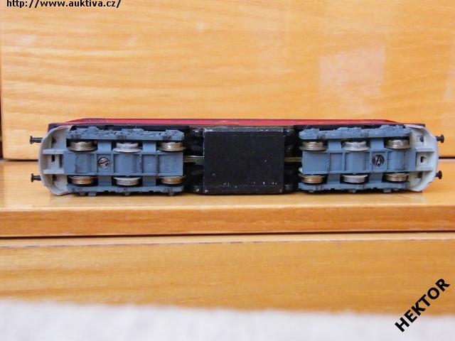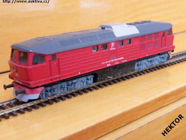 Sběratelský model dieselové lokomotivy T 679 2002, ČSD, tmavší červená, střecha tmavá šedá a nástavba stříbrná, !!! na čelech bílá rámová hvězda!!!, spodek lokomotivy černý, podvozky tmavé šedé, kardany umělohmotné, krajní dvojkolí kovová a prostřední dvojkolí umělohmotná - mají nahradit bandáž, čelníky tmavší červené a pluhy šedé, výrobcem BTTB koncem 70. let, kat. č. 2641. Výměnná spřáhla a umělohmotné nárazníky. Po zakoupení byl model odložen do vitríny a pouze několikrát projet, je dlouho neježděn. Bez originální krabičky.