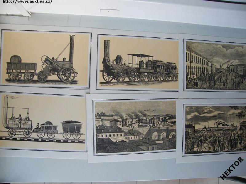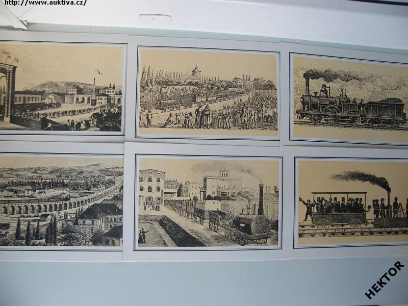 Dobové pohledy - 12 různých obrázků lokomotiv a železničních objektů. Vydalo Nakladatelství dopravy a spojů v roce 1989, ke 150 letům železnice na území ČSSR, nákladem 5000 výtisků. Prakticky nepoužívaná. Cena je za 1 set.