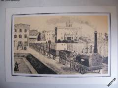 Obrázek ze setu Dobové pohledy – Dobová atmosféra postupimského nádraží v Berlíně z r. 1838 – ze setu 12 různých obrázků lokomotiv a železničních objektů. Vydaného Nakladatelstvím dopravy a spojů v roce 1989, ke 150 letům železnice na území ČSSR, nákladem 5000 výtisků. Velikost 210 x 145 mm. Prakticky nepoužívaná. Cena je za 1 kus.