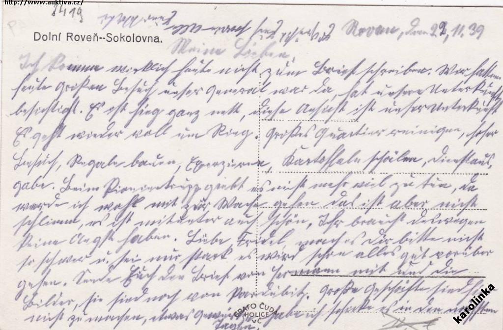 DOLNÍ ROVEŇ=SOKOLOVNA=PARDUBICE /rok1939?*AA8419