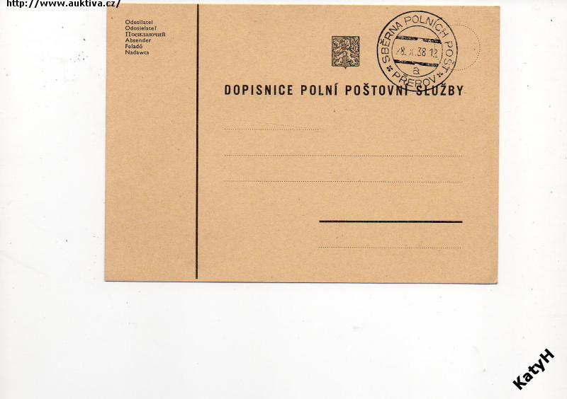 dopisnice raz.Sběrna polních pošt Přerov 2.10.1938,O6/376