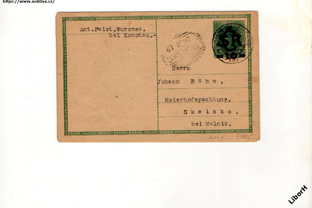 Dopisnice CDV 1 raz Skalsko r.1919 O4/664