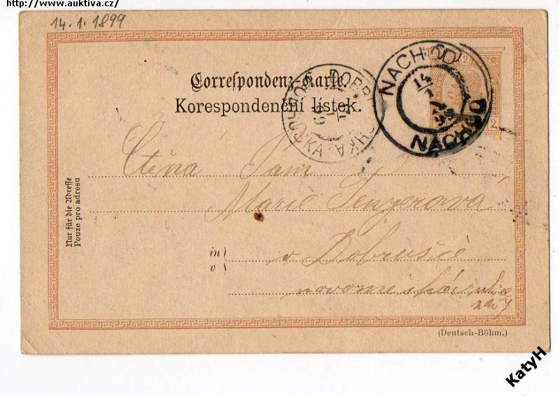 dopisnice raz.Dobruška r.1899,prošlá,O9/214