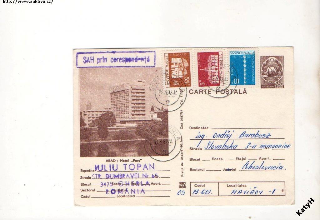 dopisnice Rumunsko šachisté r.1982,O9/749