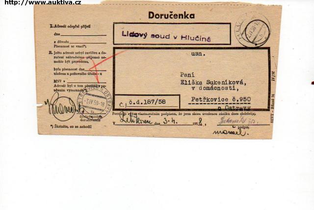 Doručenka raz.Petřkovice,Hlučín r.1958 O3/77