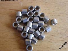 Dutý kovový váleček, vnější průměr 4,5 mm; vnitřní průměr 3,4 mm; výška 3,6 mm. Nový nepoužitý. Cena je za 1 kus.