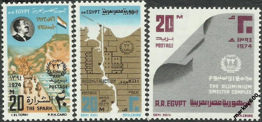 Egypt - arabská republika 1974 č.84-86, čisté, nepoužité, stopa po nálepke na všetkých