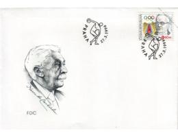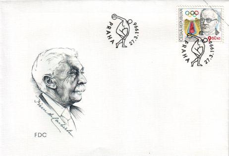 FDC 109 100 let olympijských her 1996, provedení specimen - černá linka přes roh obálky, pošta předávala jiným poštovním správám, UPU a obchodníkům jako vzor