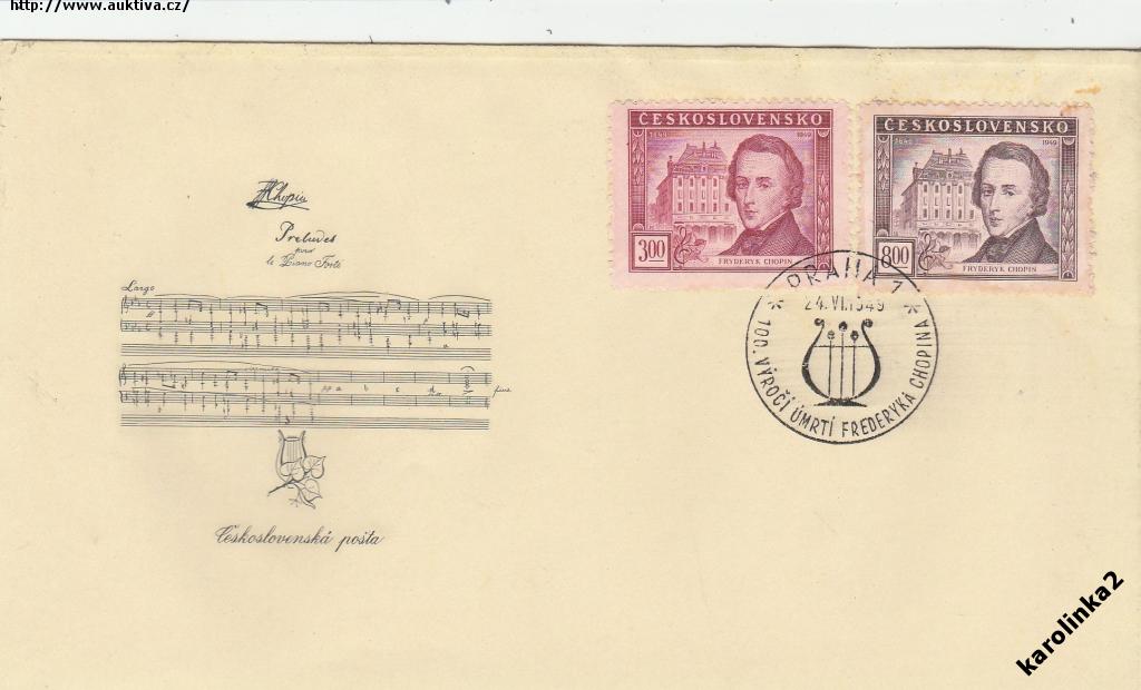 FDC=OBÁLKA +PŘITISK =HUDBA F.CHOPIN /rok1949*c5404
