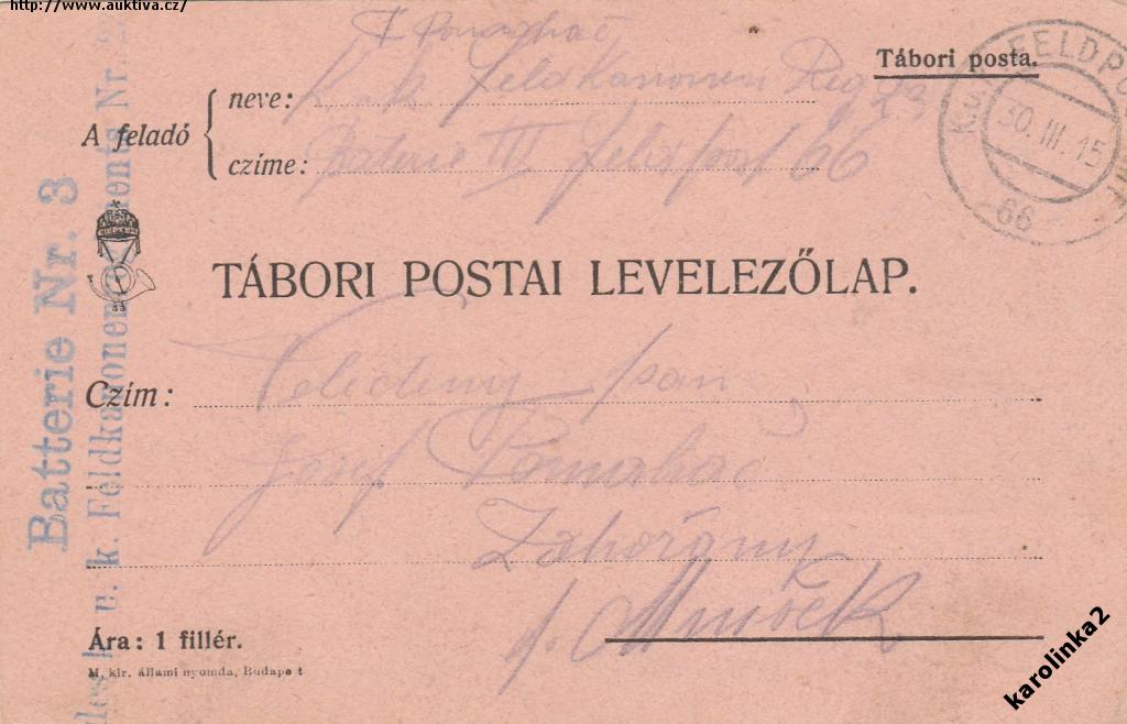 FELDPOST= DO MNIŠEK /rok1915/*c5972