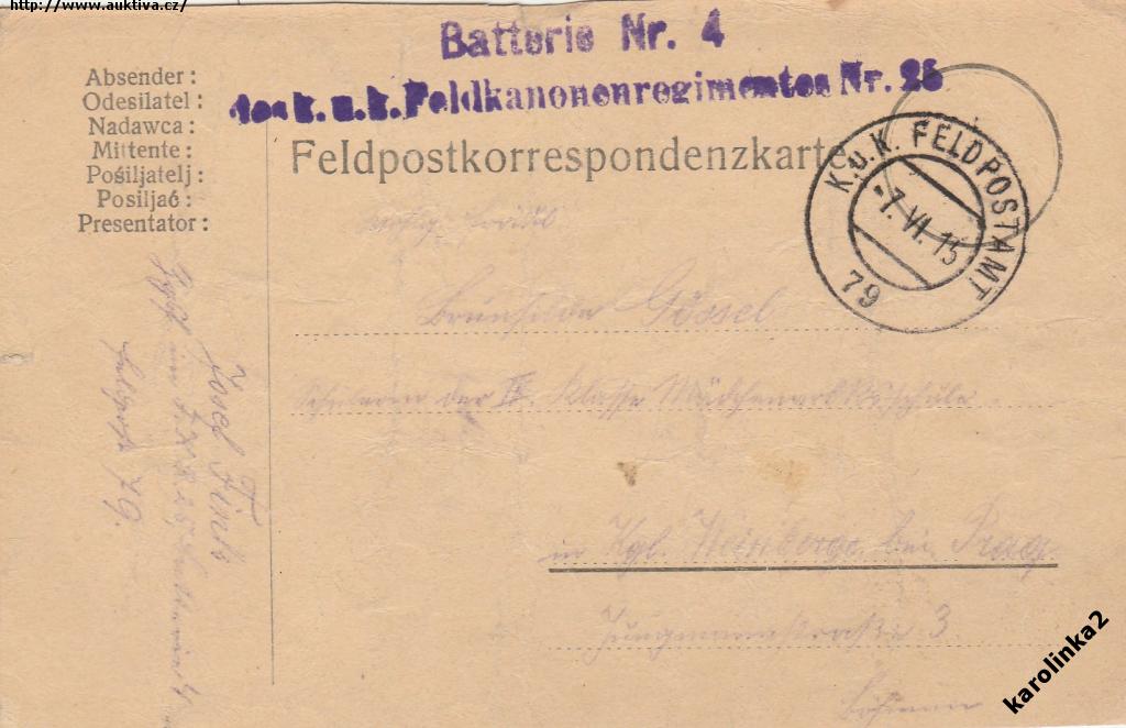 FELDPOST=No.79 DO PRAHA /rok1915/*c5973
