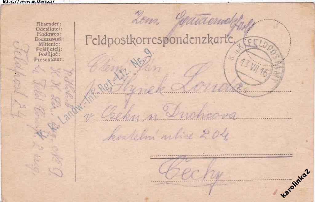 FELDPOST OD VOJÁKA=Z BOJIŠTĚ=OSEK=DUCHCOV=rok1915*c9670