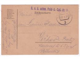 FELDPOST=VOJÁK PÍŠE DO=ŽIŽKOV U PRAHY=rok1917*P1404