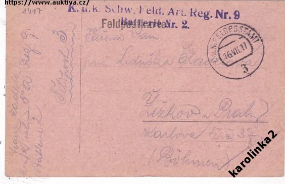 FELDPOST=VOJÁK PÍŠE DO=ŽIŽKOV U PRAHY=rok1917*P1417