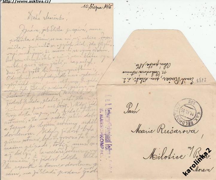 FELDPOST=z BOJIŠTĚ do MILOTICE n.B/ HRANICE /rok1915*c2897
