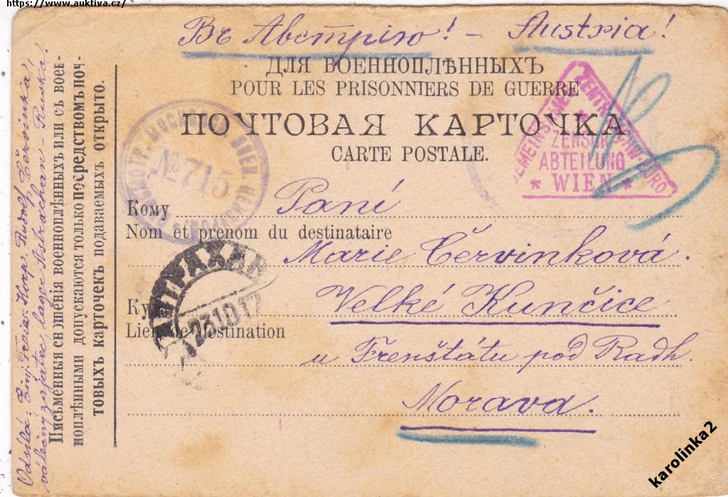 FELDPOST=ZAJETÍ RUSKO =KUNČICE=FRENŠTÁT=r1917*c11612