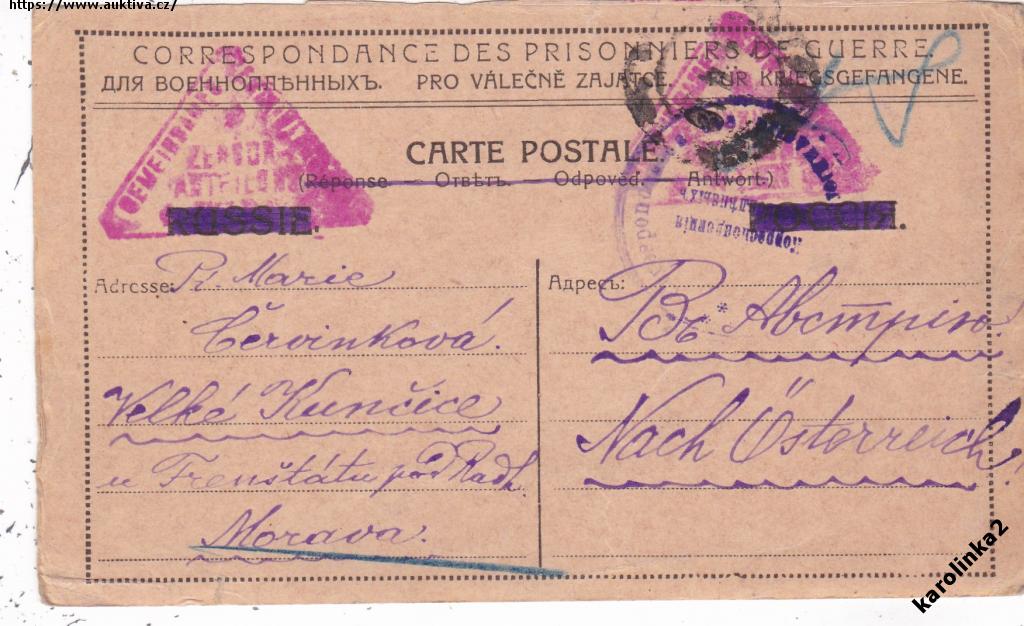 FELDPOST=ZAJETÍ RUSKO =KUNČICE=FRENŠTÁT=r1918*c11595