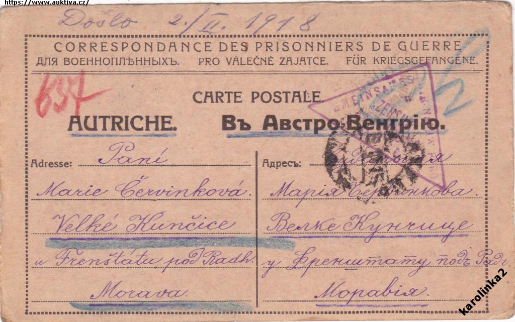 FELDPOST=ZAJETÍ RUSKO =KUNČICE=FRENŠTÁT=r1917*c11614