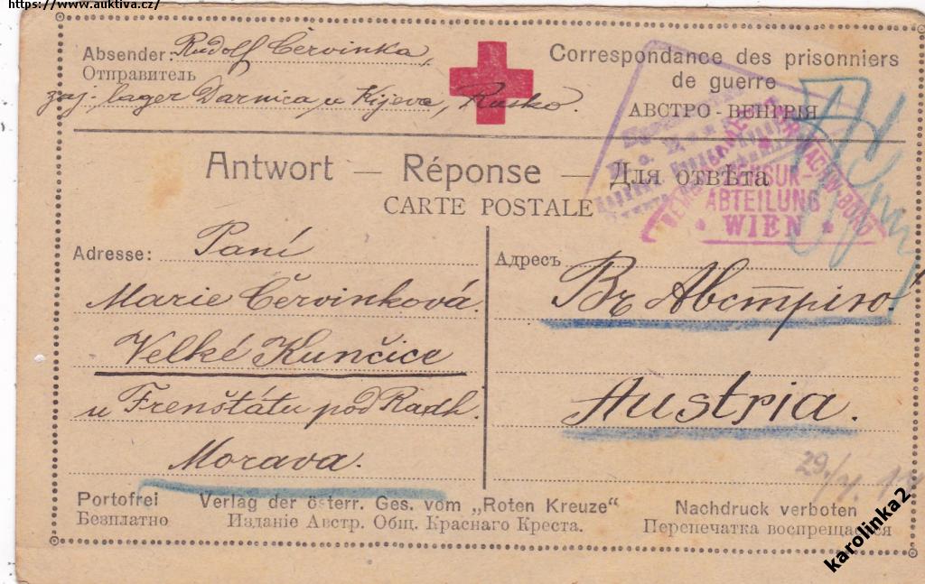 FELDPOST=ZAJETÍ RUSKO =KUNČICE=FRENŠTÁT=r1917*c11632