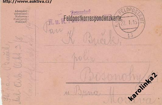 FELDPOSTKA= z BOJIŠTĚ do BOSONOHY / BRNO /rok1915*c2954