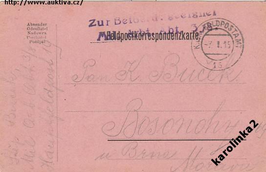 FELDPOSTKA= z BOJIŠTĚ do BOSONOHY / BRNO /rok1915*c2955