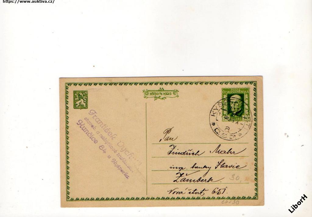 Firemní dopisnice CDV 30 prošlá raz.Kyšperk r.19325 O1/918
