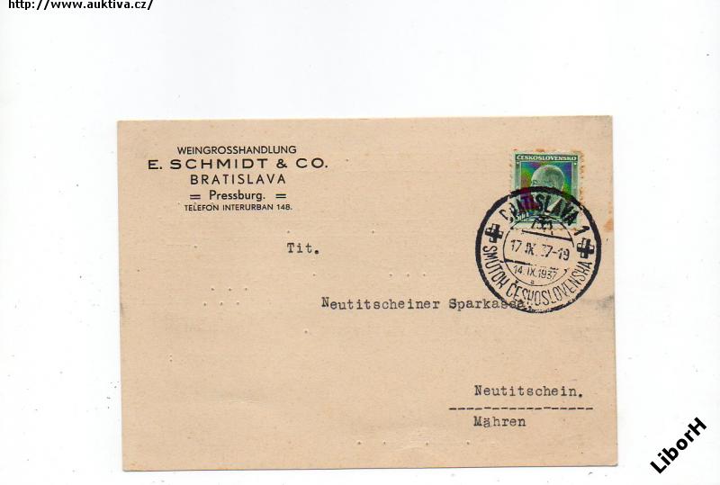 firemní dopisnice smuteční raz Bratislava r.1937,O7/87