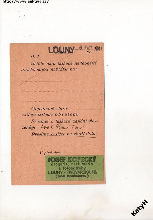 firemní dopisnice tiskopis raz.Louny r.1941 O10/470