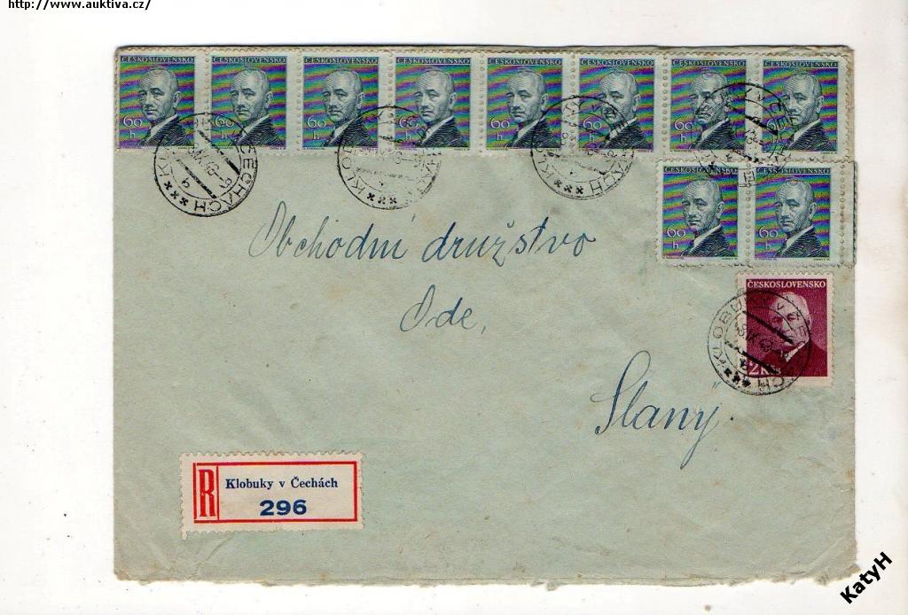 Firemní obálka 11 známek raz.Klobouky r.1948,O10/194