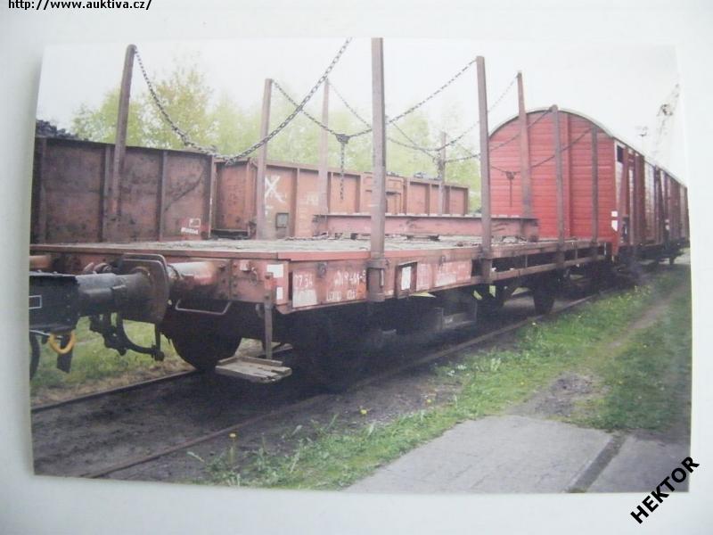 Fotografie barevná 2 osého plošinového s klanicemi a oplenem typu Lcmp - na odstavné koleji v depu Lužná u Rakovníka v roce 2005. Fotografie velikosti 129 x 88 mm. Nová nepoužitá. Cena je za 1 kus.