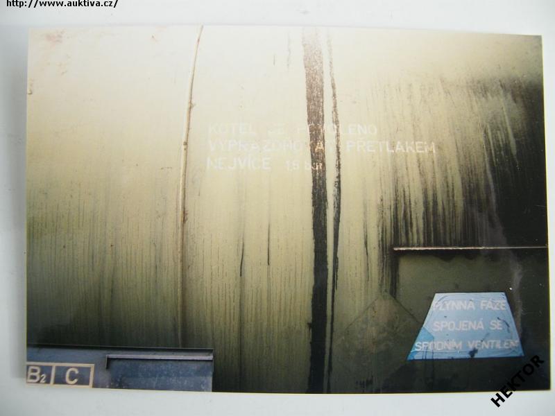 Fotografie barevná 4 osé cisterny řady Zaes - popisy na pravé straně kotle - na nákladovém nádraží v Plzni - Koterově roku 2005. Fotografie velikosti 129 x 88 mm. Nová nepoužitá. Cena je za 1 kus.