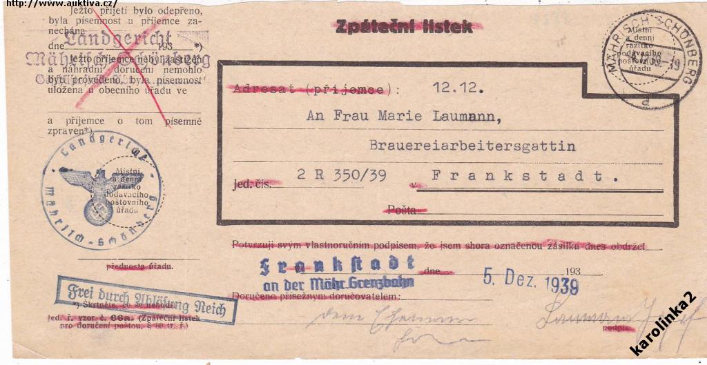 FRANKSTADT=NOVÝ MALÍN=ŠUMPERK=SUDETY /rok1939*c8229