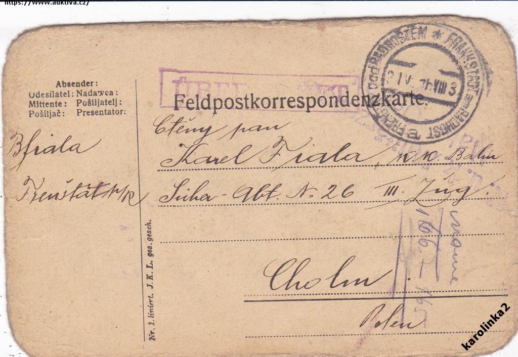 FRENŠTÁT p.R=KAREL FIALA=FELDPOST CHOLM =r1916*c11706