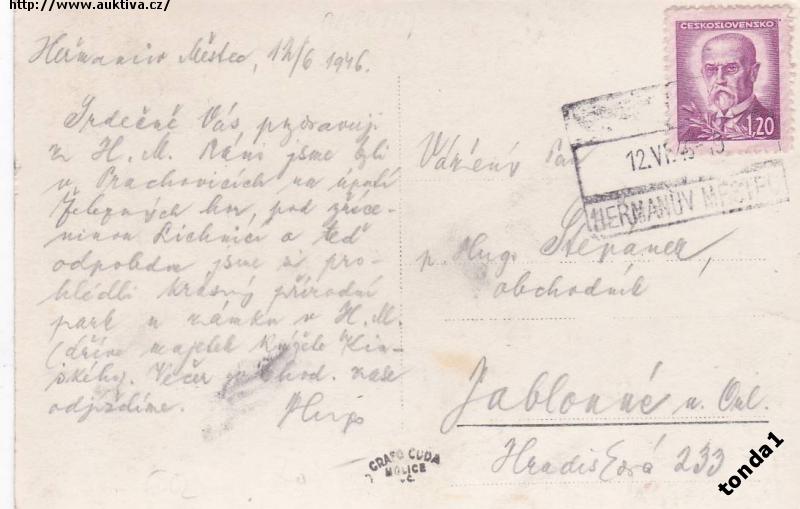 HEŘMANŮV MĚSTEC OKÉNKOVÁ r. 1946 GRAFO ČUDA °54012X