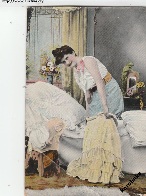 HEZKÁ ŽENA =U POSTELE =LAKOVANÁ=rok1911*BE3791