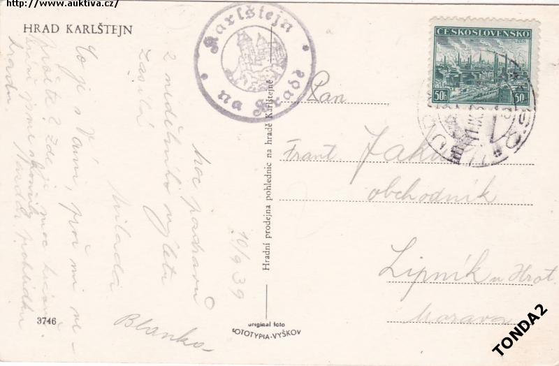 HRAD KARLŠTEJN 3746 HRADNÍ PRODEJNA - FOTOTYPIA - VYŠKOV °223