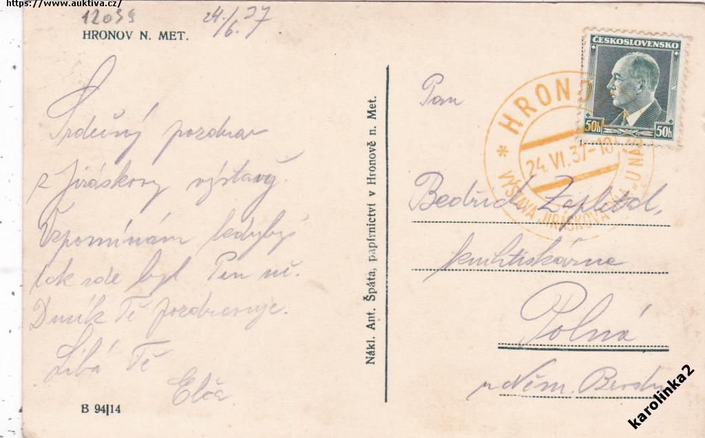 HRONOV=VÝSTAVA=ŽLUTÉ RAZÍTKO=rok1937*c12039