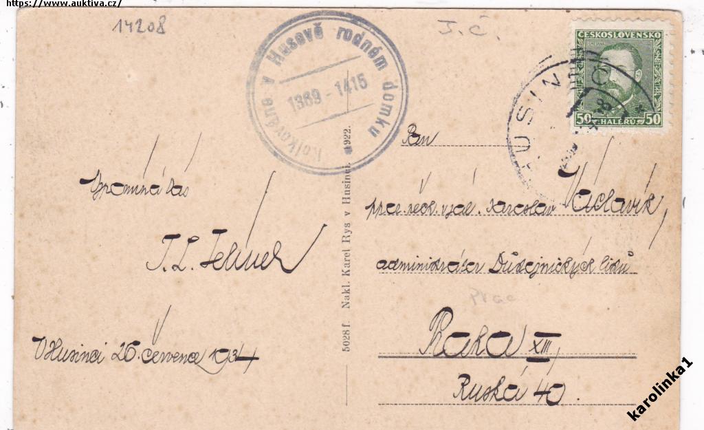 HUSINEC =HUSŮV DŮM =KOSTEL =rok1934?*kc14208