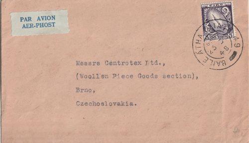 Irsko 1948 Ruka s mečem, Michel č.78 AI na dopisu do ČSR