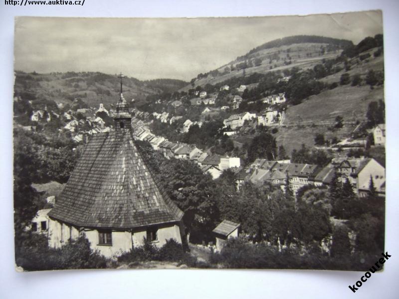 Jáchymov celkový pohled kostel dřevěné došky 60. léta Orbis