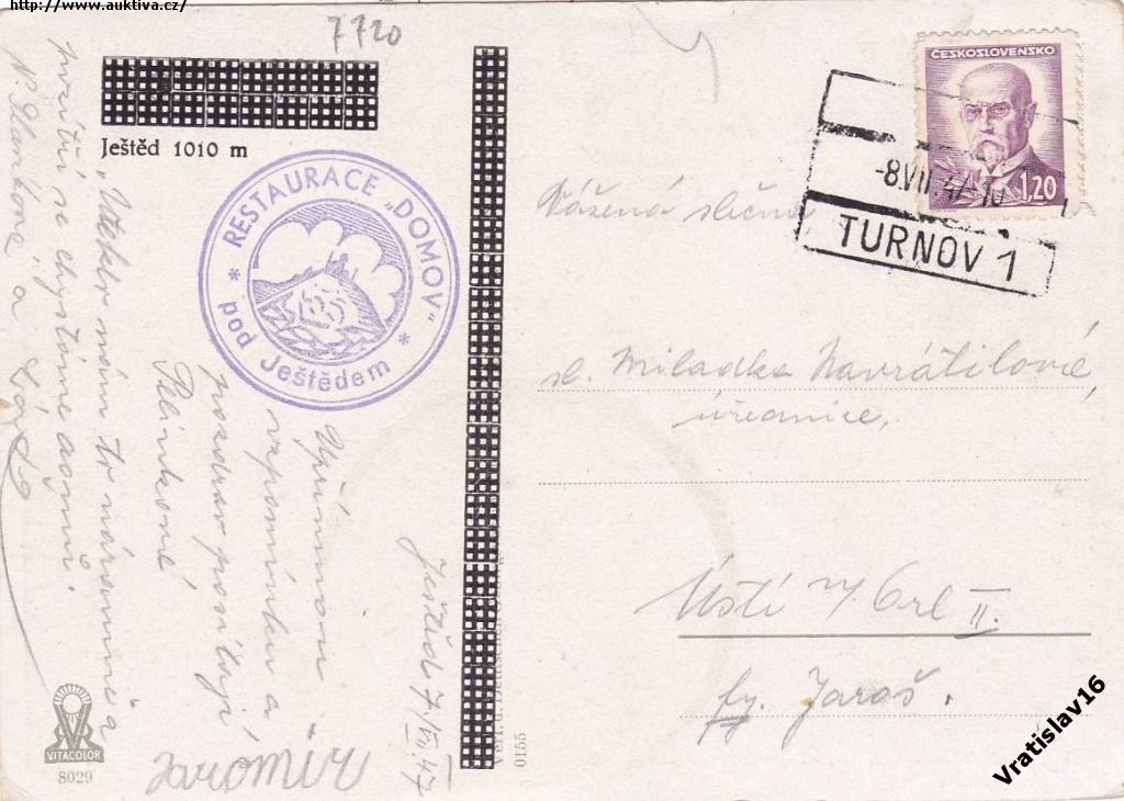 JEŠTĚD +NÁDRAŽNÍ RAZÍTKO TURNOV /rok1947?*UF7720