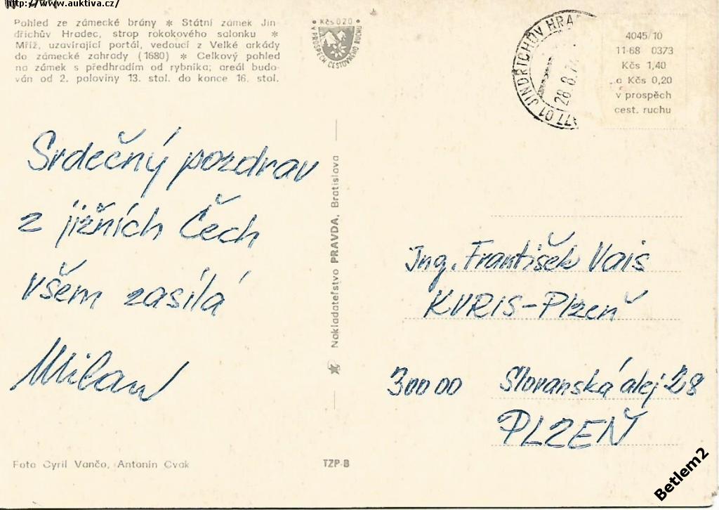 Při jedné i více vyhraných aukcích jednou poštovné 44 Kč za doporučenou zásilku (platí asi pro 1-9 ks pohlednic, dále dle váhy a ceny)Do ceny 500 Kč doporučeným dopisem, nad 500 Kč cenným psaním. Obyčejným dopisem vzhledem ke "ztrátám" zasilek jen na výslovné přání a riziko kupujícího.